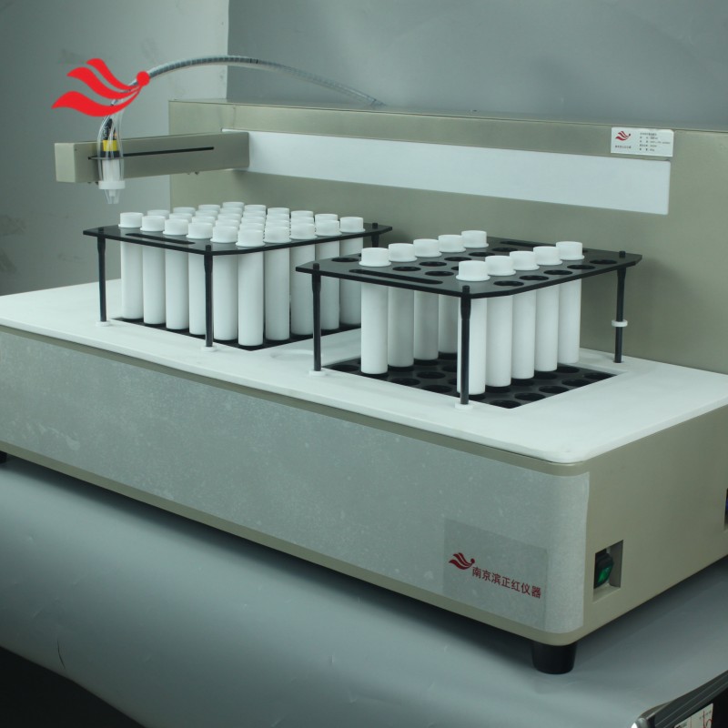 全自动石墨消解仪是继防腐电热板、电热消解仪之后的湿法消解发展方向的新型仪器,是专门针对目前实验室样品量大、实验人员少、要求自动化程度高等特点而设计的一款全自动石墨消解系统。全自动石墨消解仪SGD60一键启动,自动实现一样品消解的自动加液、样品混匀、加热消解、赶酸、托举冷却、快速定容等实验操作,多一批可以自动完成60个样品的处理,解放实验人员的双手,让消解变得简单。满足原子荧光、原子吸收、ICP-MS等分析仪器要求的准确度