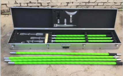 除冰器具操作头按照作用设计成不同形状,使用时可以通过敲、铲、钩等方式有效除去瓷瓶、支架、导线及杆塔上的积雪及覆冰。使用时,根据需要从套件中选取合适的除冰器具,将其安装到绝缘杆的一端并拧紧后即可使用。绝缘杆分为长、短两种规格,可以根据现场情况进行任意组合,以获取合适的长度来满足不同场合的需求。
