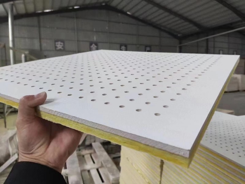 穿孔吸音板有贯通与石膏板正面和背面的圆柱形孔眼,在石膏板背面粘贴具有透气性的背覆材料和能吸收入射声能的吸声材料等组合而成。可以根据室内声学设计,进行不同的穿孔率设计,在一定的范围内控制组合结构的吸音系数,从而达到设计效果。通过控制穿孔孔径、孔距,并可根据客户需求改变穿孔率,z大穿孔率<30%,背板穿孔要求与面板相同,吸音布是采用优质的无纺布等吸声材料。