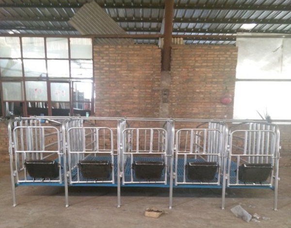 定位栏有利于母猪保胎,便于实现定量饲喂,有效避免妊娠母猪群喂饲时争食、咬斗,定位栏的喂饲饮水喝粪便处理都很集中,占地面体积小,污水产生量少,便于实现机械化管理。