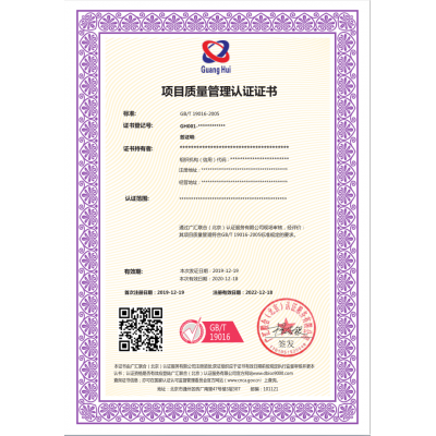 项目质量管理体系认证证书 2020年8月8日,深圳市新世纪企业管理顾问有限公司带大家来了解一下。