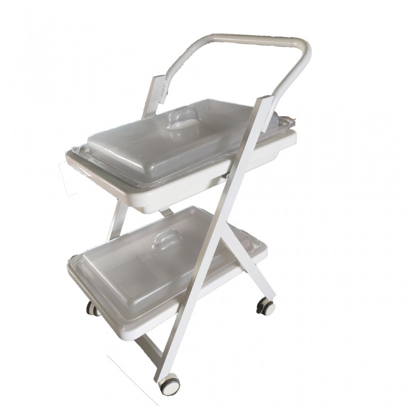 1.由一次压模成型的高分子托盘、全钢烤漆车体、静音脚轮组成,具有耐腐蚀、不沾水、车行顺畅、取放方便等优点;