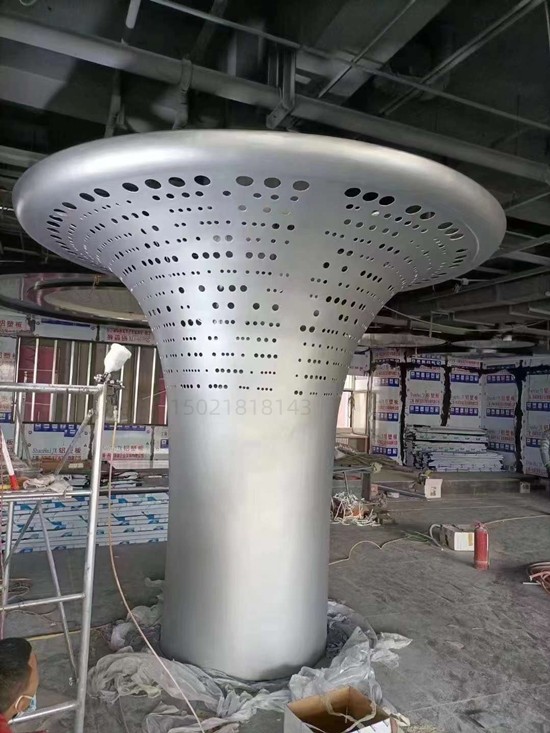 大厅内景灯光雕塑 不锈钢镂空立柱雕塑作品