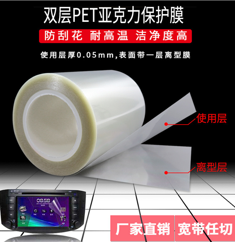 5.由光学级透明聚酯薄膜(PET)涂布硅胶后,再贴合透明聚酯(PET)离型膜所构成。
