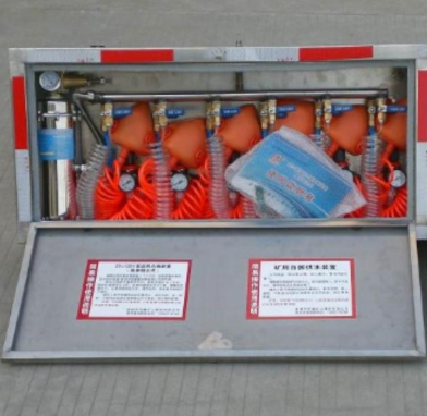 ZYJ-A型矿井压风自救装置是煤矿煤尘、瓦斯和二氧化碳突出矿井的实际情况,箱式压风自救装置结合呼吸救护现场的实际经验,具有实用新型发明的一种新型压风自救装置。在矿井作业,我们常见的一种自救设备应该压风供水自救装置了,ZYJ型压风自救装置是一种利用地面压风机,将无害的空气经压风管道送至压风自救装置,在发生灾难或有毒气体侵害时供人呼吸的一种性自救装置。供遇险人员快速自救逃生时使用。具有重量轻、体积小、呼吸舒适和携带方便等特点。