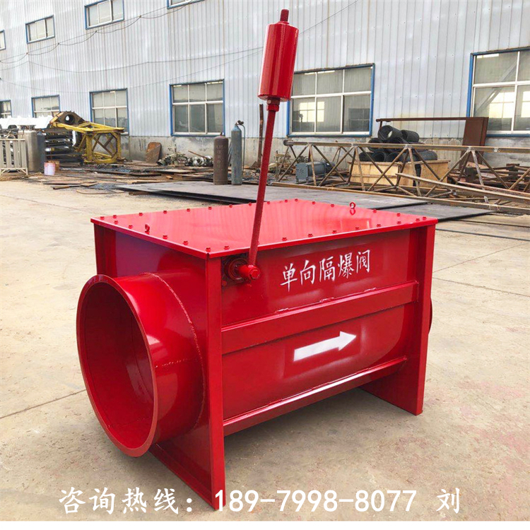 管道隔爆阀正常用于除尘器或旋风分离的入口管道上,是一种简单、经济可 靠的的隔爆产品,主要用来隔断设备内部爆炸后产生的火焰和冲击波传到上游的管道和设备。在操作过程中,单向隔爆阀的阀瓣由管道内正常工作的气流打开或者处于常开状态。在被受保护的设备内部发生爆炸的情况犀隔爆阀的阀瓣受冲击波的冲击而关闭。