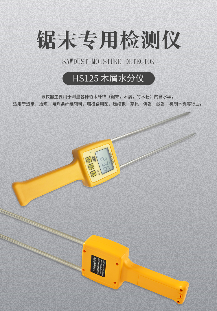 HS125木屑水分仪是我公司研发生产的一款高精度,高性能的水分测定仪器。该仪器主要用于测量各种竹木纤维(锯末,木屑,竹木粉)的含水率,适用于造纸,冶炼,电焊条纤维辅料,培植食用菌,压缩板,家具,佛香,蚊香,机制木炭等行业。