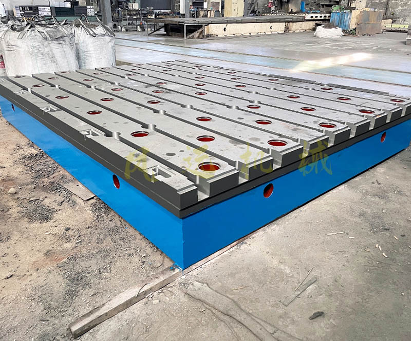 外观:铸铁平台为箱型筋板式,通常底部加强筋喷涂红色防锈漆,工作面边沿喷涂灰色油漆,边沿下部分喷涂蓝色油漆。也可以根据用户要求颜色喷涂。