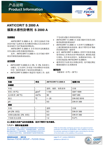 性能H ANTICORIT S 2000 A是一种可以添加在不结 冰的环境下 ,运转的各类内燃机和固定式发动机的冷却系统的不含矿物油的防锈蚀剂。 ANTICORIT S 2000 A含有有机和无机酸基及 有色金属去活性剂基的防锈成份。 此外.ANTICORIT S 2000 A还含有减少滑环 密封件磨损的润滑添加成份。 |
