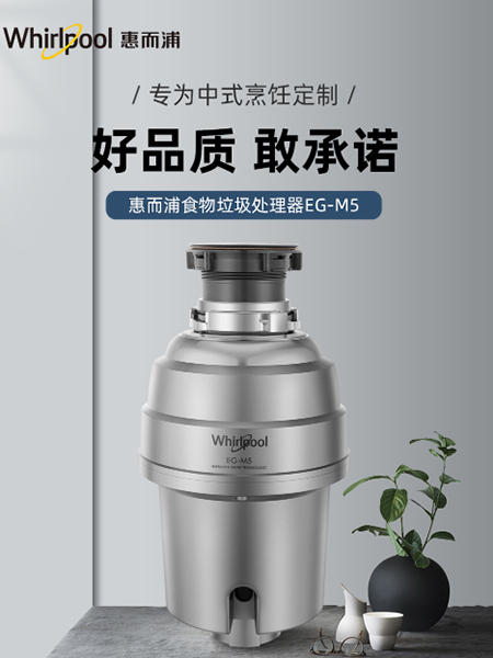 惠而浦食物垃圾处理器EG-M5专为中式烹饪定制,好品质,敢承诺。*力净抗*仓,腔体采用全复合树脂抗*材质,抗*性能持*稳定,有效抵制细菌滋生,给您洁净厨房。强劲性能的PMDC永磁直流电机使用寿命长,550W大功率4000r/min,强扭矩力,拒*卡顿。精细粉碎不添堵,安*无刃研磨,层层高速磨切,颗粒更细,粉碎更稳底,日常剩菜剩饭,鸡鸭鱼骨,果皮果壳,小贝壳等通通轻松处理,无需担心下水道堵塞。安*无刃研磨,惠而浦采用无刀片合金研磨锤研磨技术,轻松碎骨成渣,使用更安*,更放心。68dB轻柔动作,营造舒心的使用体验,四重降噪技术:防溅罩、消音棉、密封圈、ABS外壳。便捷空气开关,采用*缘材质、*水防电、无惧湿手、一键启停、安*稳定、不易误操作。广泛研磨范围,符合中式烹饪习惯、*效研磨骨头、蔬果菜芯、残羹剩饭、茶叶残余等食物垃圾。同时更是洗碗机的好伴侣。