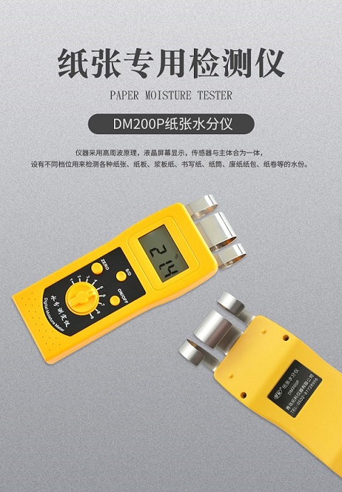 DM200P纸张水分仪是我公司研发生产的高性能、无损检测、液晶显示、升级版的新款水份检测仪器。仪器采用高周波原理,液晶屏幕显示,传感器与主体合为一体,设有不同档位用来检测各种纸张、纸板、浆板纸、书写纸、纸筒、废纸纸包、纸卷等的水份。该仪器测量水分范围宽、精度高、显示清晰、测量迅速、性能稳定、结果可靠,而且体积小、重量轻,可随身携带在现场进行快速检测,使用简单方便。DM200P纸张水分仪适用于造纸、印刷、包装行业在生产过程中检验水份。