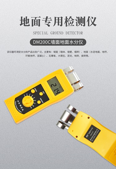 DM200C墙面地面水分仪:该仪器主要用于地板铺设、涂料粉刷、地坪上漆、建筑装潢、工地施工过程中理想仪器。该仪器通常被不同用户的客户称为墙体水分仪、地面水分仪、混凝土水分仪、石膏板水分仪等等。该仪器可测定水分的产品比较广泛,主要有:墙面(墙体、墙壁、墙砖)、地面(水泥地面、地坪、环氧地坪、混凝土)、石膏板、大理石、泥坯、地砖、瓷砖等。