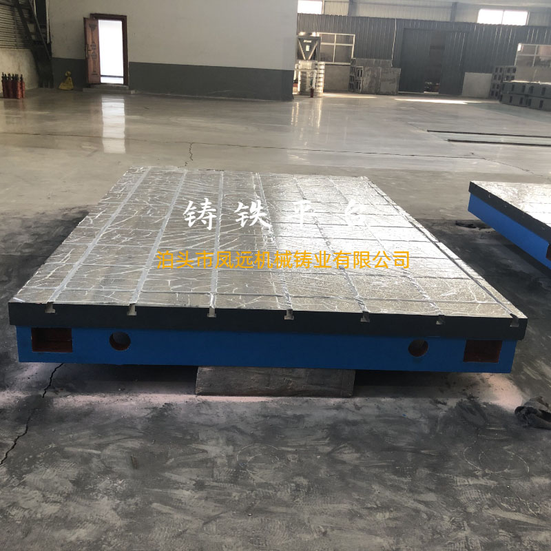 外观:铸铁平台为箱型筋板式,通常底部加强筋喷涂红色防锈漆,工作面边沿喷涂灰色油漆,边沿下部分喷涂蓝色油漆。也可以根据用户要求颜色喷涂。