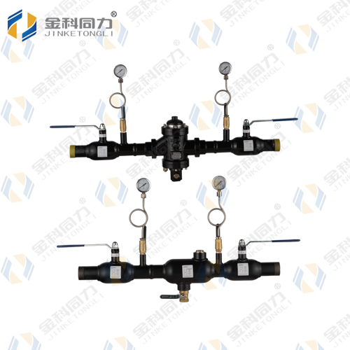 2、钢制焊接热力入口节能装置B组安装在供暖热力入口的回水管道上,介质流动方向须与钢制焊接热力入口节能装置B组箭头方向一致,导压管与回水装置B组平衡阀底部接头相连,另一端与供水管连接,导压管供水端安装关断球阀,以便启动消去堵塞功能;供水管回水管上应分别装设压力表,便于调节控制压差。