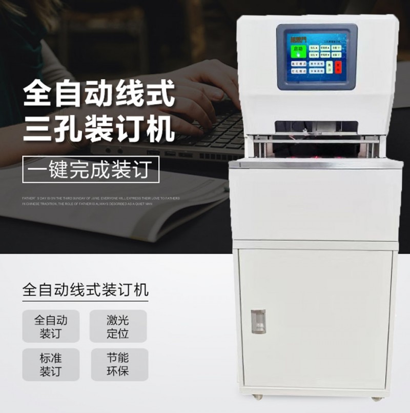 装订方式:全自动一键式三孔同步打孔并自动带线。