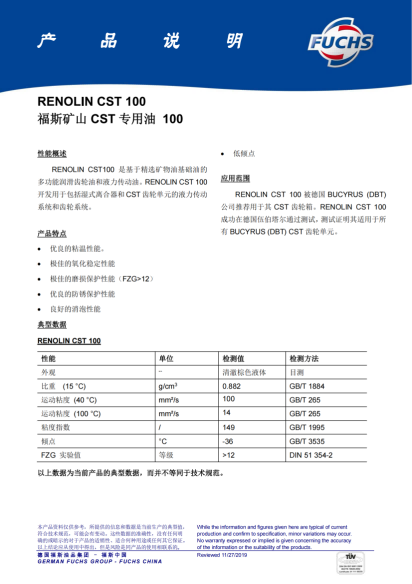 | RENOLIN CST100 是基于矿物油基础油的 多功能润滑齿轮油和液力传动油。RENOLIN CST 100 开发用于包括湿式离合器和 CST 齿轮单元的液力传动 系统和齿轮系统。 |