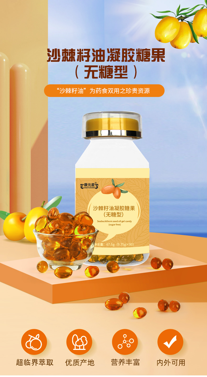 【产品名称】康元星牌沙棘籽油凝胶糖果