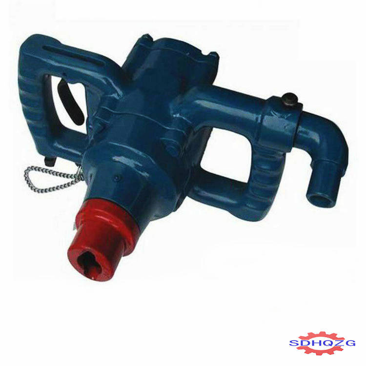 工作原理:勾动压柄推动推杆及进气阀压缩空气由进气接头经进气阀座进入气缸推动滑片及转子高速旋转,经由中心齿轮、行星齿轮、内齿轮及行星架组成的一级行星减速器减速,行星架带动钻卡中速旋转,钻卡带动螺旋钻杆及钻头在煤层上钻出深孔。