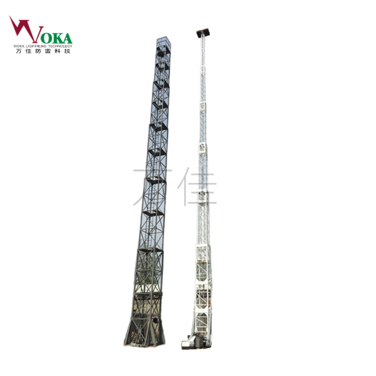 郑州万佳防雷有限公司研制生产的圆管形拉线传动电动升降式塔,适用于升降天线、照明、避雷、环境监测等设备,目前电动升降杆产品已广泛应用于 交通、广电、民航、勘探、科考、抢险救灾、森林防火等领域。特的工作原理和机械传动形式以及新颖的结构设计,使其与其它同类电动升降杆相比,定向性更好、升降速度、外形尺寸更小、工作载荷更大、操作方法更易、安装固定更牢、工作的稳定性、可靠性和安稳性更强。