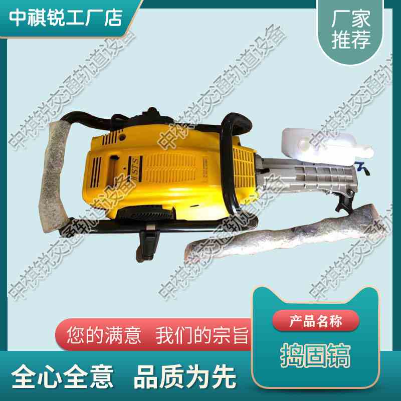 捣固机为双升降油缸无导柱式、双捣镐、横向移动方式的走行结构。采用日本本田机作动力,两台捣固机为一组,置于同一走行架上作业,附设有轻便下道架及过道架。