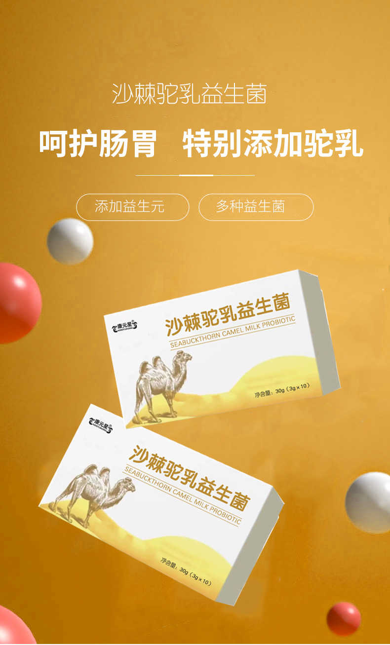 【配 料】低聚果糖、驼乳粉、沙棘果粉、乳钙、青春双岐杆菌、动物双岐杆菌等