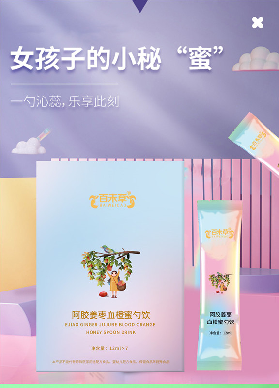【产品名称】百未草阿胶姜枣血橙蜜勺饮品