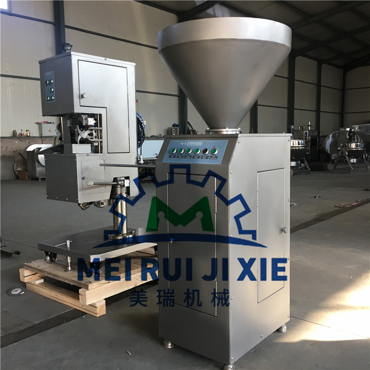 小型灌肠生产线 全自动液压灌肠机 商用灌肠机器该产品外形美观、做工精良、操作方便、工作过程中液压油不发热,使用安全可靠。该机的料斗、符合食品卫生要求。可靠耐用,便于清洗,采用SUS304食品级不锈钢材质,阀门、符合食品安全要求。灌肠管及整机外包装均采用不锈钢制造。是加工肠类制品的必备设备。并且灌装速度可调。能灌制大、中、小各种规格的肠制品。