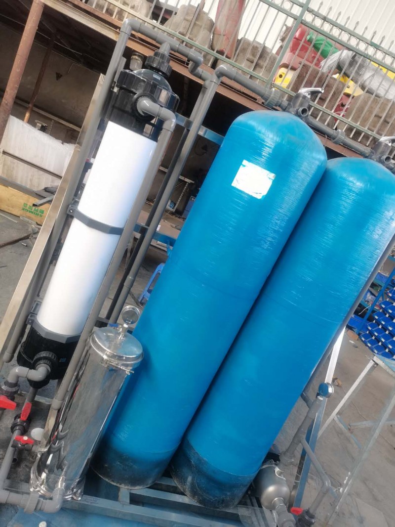 1、原水→原水箱→多介质过滤器(石英砂)→活性炭过滤器(果壳活性炭、压缩活性炭等)→软化器