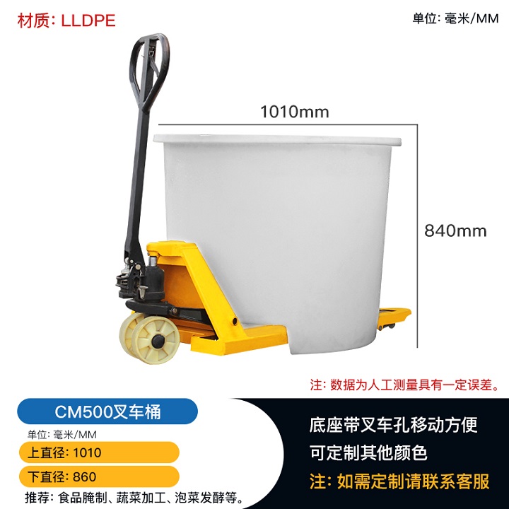 桶底设有加厚叉车底座,方便叉车进叉搬运方便。