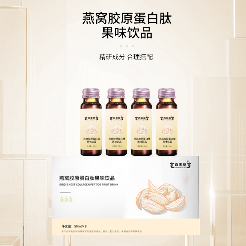【配 料】胶原蛋白肽、燕窝粉、低聚果糖、维生素C、水、山梨酸钾