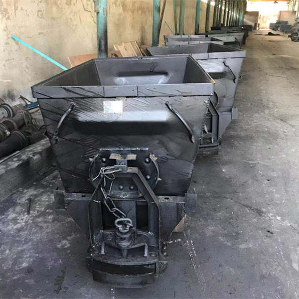 矿场运煤用翻斗式矿车单侧曲轨侧卸式矿车规格型号中国于20世纪70年代发展了斗式转载列车,由斗车、升降台和一列矿车组成。斗车装满料后由升降台顶升沿矿车车帮行进,逐个转载到各个矿车内,提高了搬运速度,实现矿车的连续装载。斗式装载列车结构简单,转弯半径小,可利用原有标准矿车加以改造。