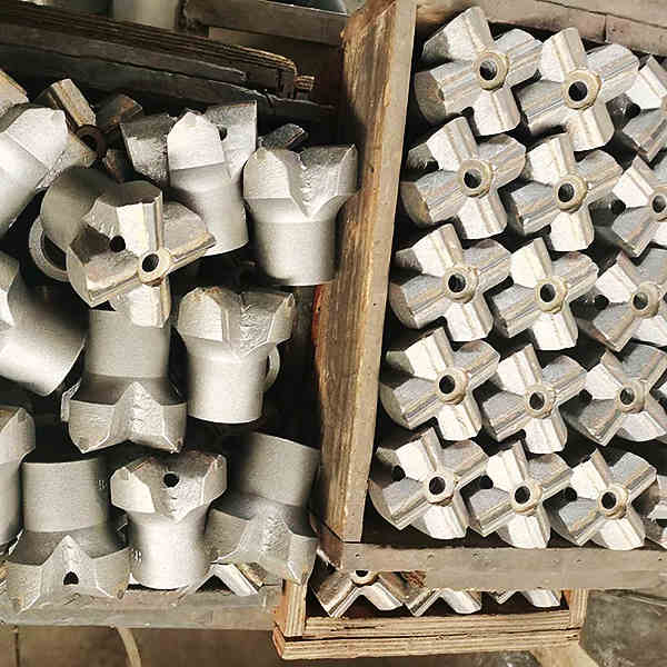 风钻头体采用50cr钢热挤压成型,为铸钢材质,顶部刀头为硬质耐磨合金。丝扣的话有带丝锥的,也有不带的,不带丝锥的直接与钻杆卡钻在一起。