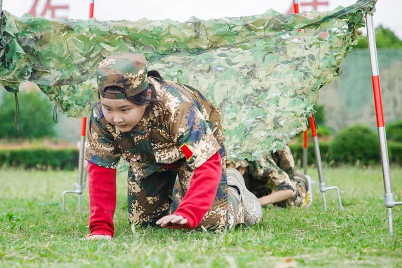 服从命令.勇于拼搏.挑战自我。苏州三六六社会实践素质培养中心营地教育课程的重心目标之一,就是锻炼孩子们的意志,培养他们在困难面前越挫越勇的精神, 用军事思想去引导孩子行为,将行为变成一种习惯,用军事的力量去潜移默化带给孩子的蜕变, 激发更多可能, 让每个孩子成为一个万人瞩目的“小将军"。军姿、整齐、报数、单个军人队列动作.......从刚开始的东倒西歪,到结营时的整齐划—,小兵们也展示出了自己的坚持和努力。