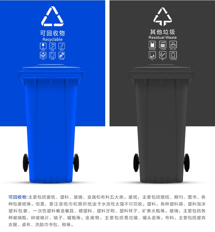 3、配置带橡胶轮,移动回收更轻松、更便捷,随时随地想移就移;