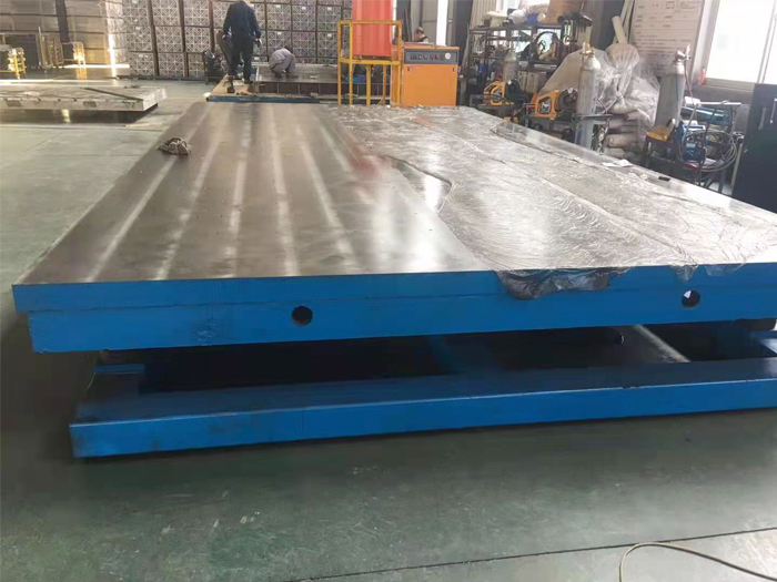 8、精度参数。 3级平板未规定接触斑点要求。1级平板要求接触斑点数在任意25×25mm平面内不少于20点。2级平板要求接触斑点数在任意25×25mm平面内不少于12点。 焊接平台的铸件面板的厚度不易过薄,这是由两个原因造成的: 1.焊接平台的使用方法,焊接平台顾名思义是在平台的上面进行焊接工作,不可避免的要进行敲打,敲打的力度造成我们不能使用太薄的面板。 2,焊接平台铸件铸造的方法:焊接平台铸件壁厚过薄,在生产铸件时会出现铸件浇不足和冷隔等缺陷。这是因为过薄的壁厚不能确保铸造合金液具有足够的能力充满铸型。通常在铸造条件下,每种铸造合金都存在一个能充满铸型的较小壁厚,俗称为该铸造合金的较小壁厚。设计铸件时,应使铸件的设计壁厚不小于较小壁厚。这一较小壁厚与铸造合金液的流动性以及铸件的轮廓尺寸有关。