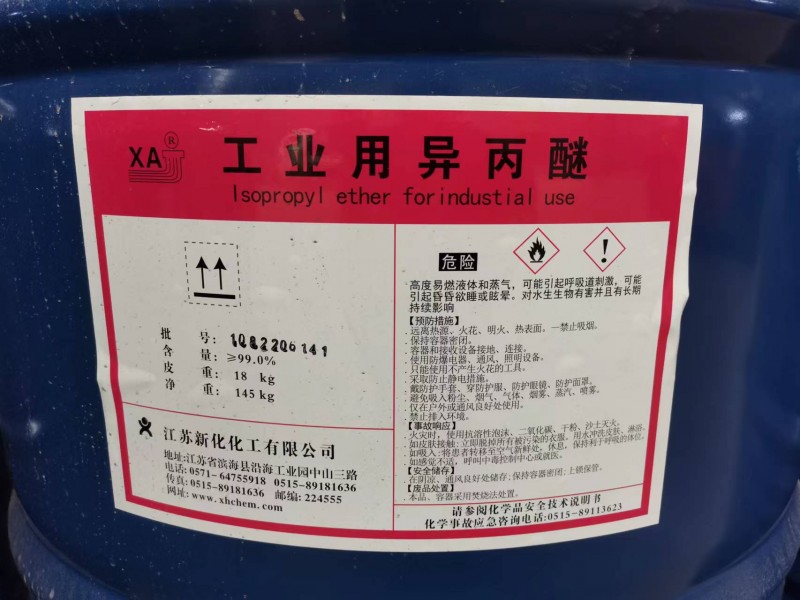 基本用途:异丙醚是矿物性油脂的良好溶剂,可用于从烟草中抽提;也是石蜡及树脂的良好溶剂,工业上常将二异丙醚和其他溶剂混合应用于石蜡基油品的脱蜡工艺。作为溶剂也应用于制药、涂料及油漆清洗等方面,二异丙醚具有高辛烷值及抗冻性能,可用为汽油掺合剂。