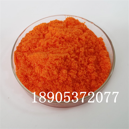 外观性状:桔红色单斜晶系细小结晶,易溶于水,有潮解性,密闭保存。