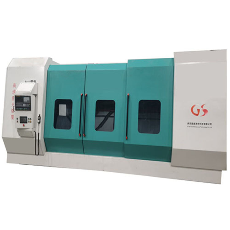 机床式高速激光熔覆设备是一款用于在轴类机械部件表面激光熔覆的设备。该设备用于取代轴类机械部件的镀铬工艺,沉积效率是传统的激光熔覆效率3-5倍;采用特殊设计优化的高速激光熔覆喷嘴、大容量高精度双筒送粉器和高精度的数控机床,保证极高的粉末利用率、长时间送粉的稳定性和熔覆层的均匀一致性。设备主要由高功率激光器、高精度的数控机床、高速激光加工头、高精度送粉器、冷却系统及控制系统组成。