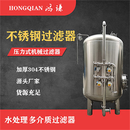 石英砂过滤器是利用一种或几种过滤介质,常温操作,pH适用范围为2-13。系统配置完善的保护装置和监测仪表,且具有反冲洗功能,泥垢等污染物很快被冲走,耗水量少,按用户要求可设置全自动功能。使原液通过该介质的触絮凝、吸附、截留,从而达到过滤的目的。其内装的填料一般为:石英砂、颗粒多孔陶瓷、锰砂等,用户可根据实际情况选择使用。其过滤精度在150目以下,可胶体微粒及高分子有机物。