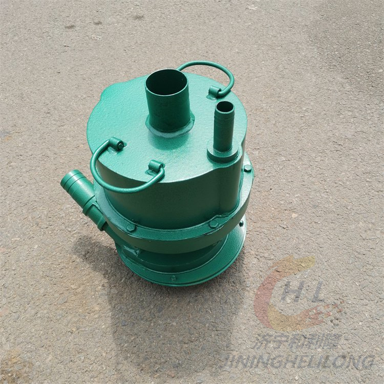 二、 煤矿用 FQW系列矿用风动潜水泵 结构紧凑,移动、装拆、维修方便。泵体涡道采用高效节能水力模型,叶轮特殊设计。该水泵排污水能力强,流量大,扬程高等优点。