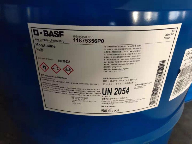 主要用于橡胶硫化促进剂的生产,还用于表面活性剂、纺织印染助剂、医药、农药的合成。吗啉还用作顺丁二烯聚合用催化剂、腐蚀抑制剂、光学漂白剂,吗啉也是染料,树脂、蜡、早胶、干酪素等的溶剂。吗啉的盐类也被广泛使用,吗啉盐酸盐等是有机合成的中间体;吗啉脂肪酸盐可作水果或瓜果类蔬菜表皮的被膜剂,可适当抑制基呼吸作用,防止水分的挥发及表皮的萎缩。
