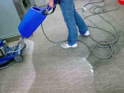 5、干泡刷洗:用装有水器、地毯刷的单盘扫地机,以干泡刷洗地毯。等清洁剂对地毯产生作用一会后,在重复刷洗工作。