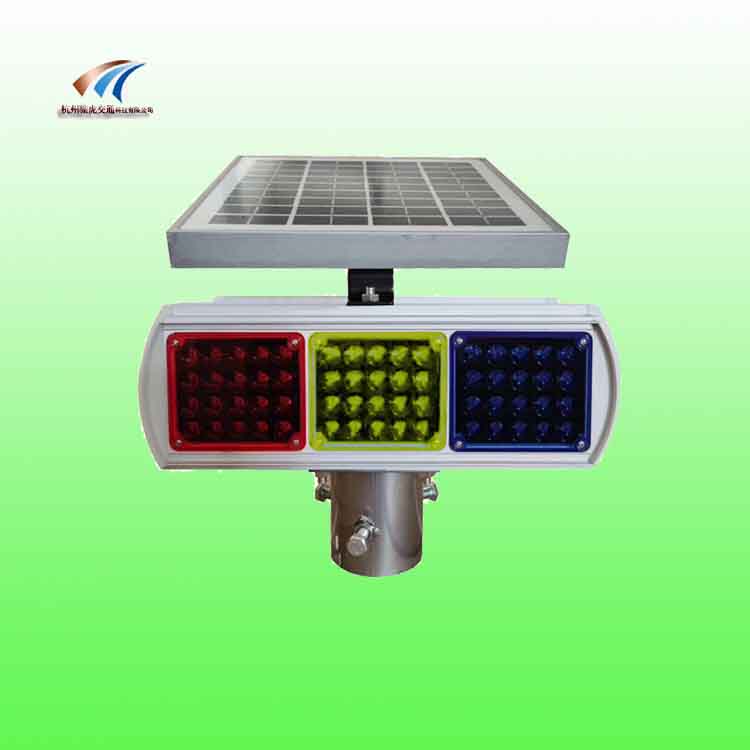 太阳能红黄蓝爆闪灯特点:外壳由经氧化处理的铝型材组合,表面塑料喷漆,外观精美,长时间使用并不会出现锈迹斑斑,闪灯采用密封结构组合式灯组,每组20个超亮LED,真空镀膜反光板,亮度高,警示效果好,聚碳酸酯灯罩,抗冲击,耐老化,整灯的密封密封效果好,有很好的防水性,并配有过充电过放电保护功能。