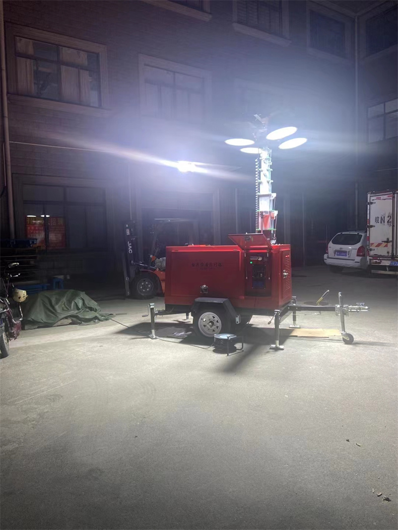 9、采用拖车方式时,灯塔与拖车连接除采取牵引杆挂钩硬连接方式外,还有保险连接线(钢丝绳或钢质链条等)和车灯连接器线(刹车灯和方向灯),以满足长距离拖行安全,。