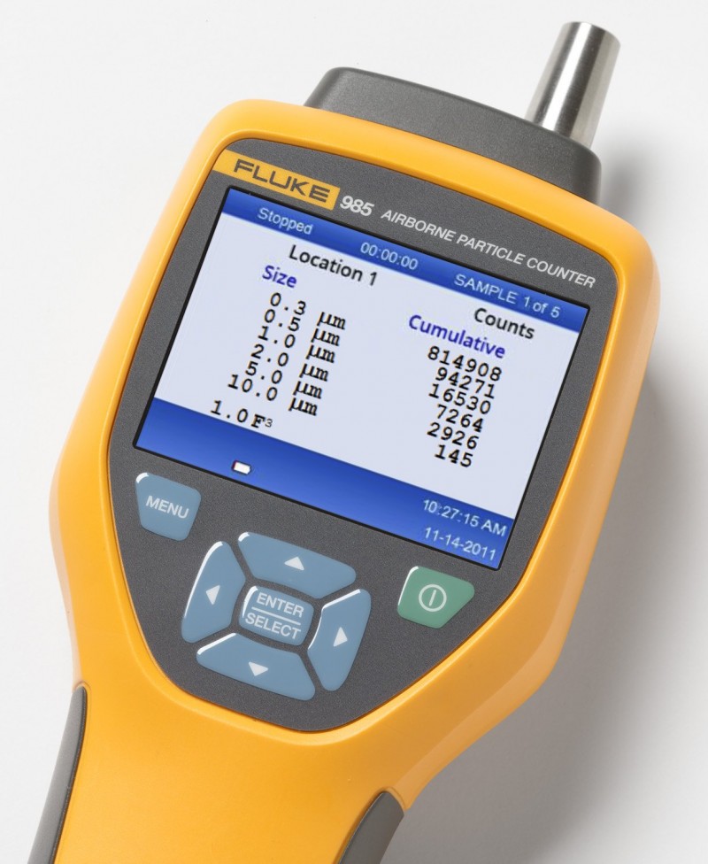 粒子计数器是设备维护、HVAC 和 IAQ(室内空气质量)专家工具箱中的必需工具。 从过滤器测试到室内空气质量调查,粒子计数器为用户提供有关受测环境中微粒浓度和来源的宝贵数据。 全新 Fluke 985 粒子计数器适用于故障诊断和监测室内空气质量问题,以及为 ISO 5-9 级认证检验 HVAC 过滤器性能和关键位置。 Fluke 985 拥有超轻型人体工程学设计、易于查看的带直观图标彩色屏幕和屏幕趋势图,便于轻松快速分析,是所有维修、HVAC 和 IAQ 专家的必备工具