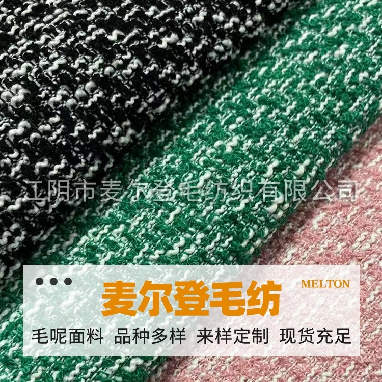 麦尔登毛纺是一家集研发,销售为一体的毛纺面料公司。公司秉持:“诚信为本、质量优先”的经营理念,近年来发展迅速,在市场有很多的老客户,公司是多个服装毛纺面料供应商之一,并以效率质量产品和服务。精诚的服务理念,公司面料开发,为适应市场的需求,公司每年都会研发一批新产品投向市场。公司主要产品有:麦尔登呢、双面呢、格子呢、法兰绒、大衣呢、立绒、斜纹顺毛、人字呢、编织呢、粗花呢、双面顺毛等各类粗纺毛呢。麦尔登呢面料是我公司的强项,具有市场竞争力。公司常规品种常年备货,一般品种均有样布可为客户打样提供方便。公司也接受客户订单以及来料加工。我们竭诚欢迎各位来电垂询,能为更多客户提供提供方便。我们竭诚欢迎各位来电垂询,希望能有进一步的合作。