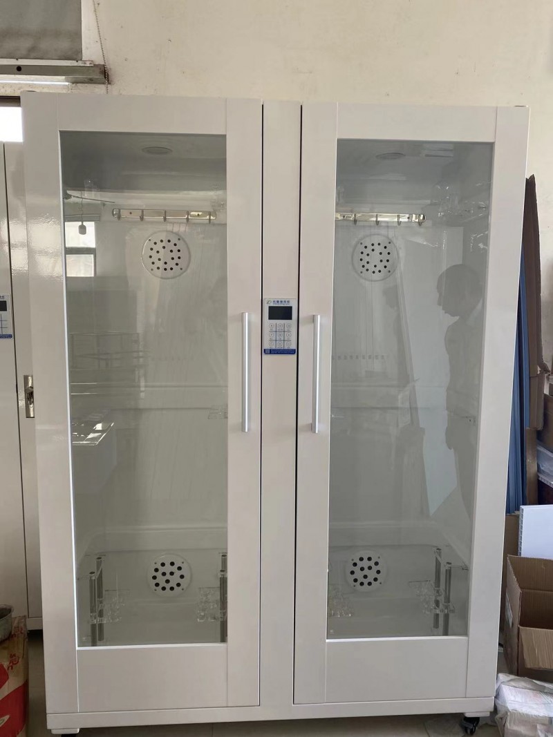 功能特点:内胆采用进口高分子复合材料独立开模一体成型,易清洁,表面细菌残留量低;使用方便、安全、快捷;对内镜无磨损等特性。外部材料采用多工艺处理的钢塑材料。与内胆有机的融为一体,柜内空间密闭效果优异,整体简洁、实用、美观、大方。内设智能化自动控制紫外线循环风消毒程序。消毒工作自动累时、照明和干燥等功能。共8种消毒模式供医院自由选择和设定。软镜柜内设计有透明PMMA制成的内镜悬挂系统,该系统为上中下三件套,防止相互碰撞,并且下部件为可升降式,适应不同尺寸的内镜的存放需要,严格按照《内镜清洗消毒技术操作规范(2004年版)第三章第二十六条中的“镜体应悬挂,弯角固定钮应置于自由位”的规定,保持内镜垂直存放,避免碰撞损伤,是现代内镜中心、手术室等科室必配设备。