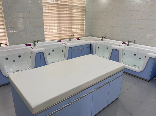 迪新婴儿洗浴中心拥有良好的台面质感,细腻亲切,无冰冷感,全弧形造型设计给婴儿体贴的呵护与关怀,洗礼池和游泳池特有的裙边设计,既方便固定一次性防交叉感染隔膜袋,又防止台面上污水流入池内。游泳池利用有效的水平面积提供更加理想的池内净深度,满足婴幼儿洗浴时的安全高度需要,同时有效保持水温特别设置水位线,防止婴儿游泳时池水外溢。