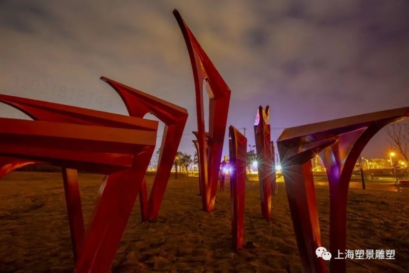 千帆竞渡不锈钢雕塑 临港海岸烤漆摆件乘风破浪 永往无前 绿地上映起一片“中国红”,参次有序的片片风帆,正带着临港的重托,迎风驶向未来,远观如千帆竞渡,百舸争流中挥斥胸怀天下的意气,亦如风展hong旗,于浪遏飞舟中尽现指点江山的feng流,作品以千帆竞渡的qi势,展现“世界海岸,未来之城”的发展理念,体现“未来感、海湖韵”的城市主题,红色风帆的气韵,彰显浩然之气与海湖之韵。