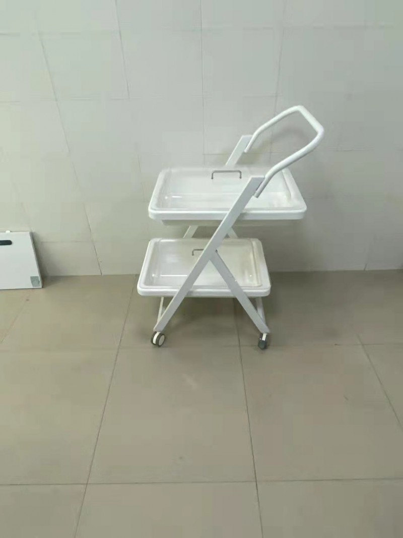 内镜转运车其周转箱材料亦由制造清洗槽台面的高分子复合材料独立开模制成,车体由不锈钢喷塑而成,具有耐腐蚀、不沾水、车行顺畅、取放方便等优点。盆内内镜存放导航隔条使污染部位和非污染部位分离。多层设计使客户在使用过程中可将清洁和污染的内镜分层标明后置放,避免交叉感染等功能。